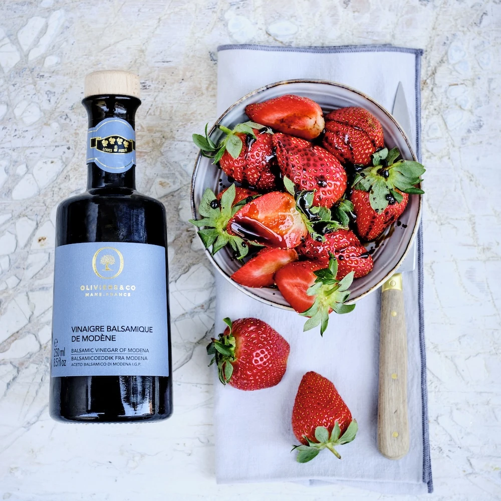 義大利宮廷料理界珍稀逸品balsamico 源於拉丁文,意指一劑滋補養身的香脂。義大利摩地納釀製香醋的工夫,以未發酵的Trebbiano甜葡萄汁,不加蓋細火慢熬,歷經24~36個小時熬煮,取得深琥珀色、如蜜煉般的濃稠質地,才能進行發酵和醋酸化階段。